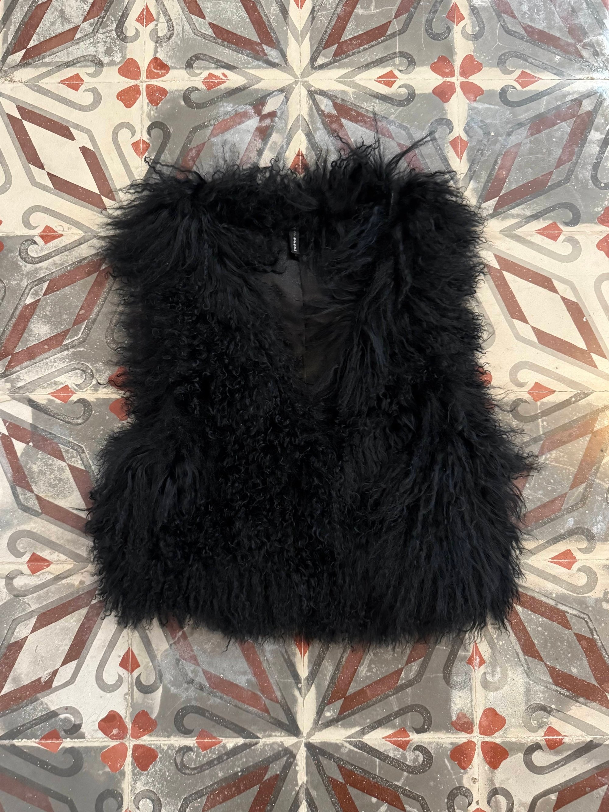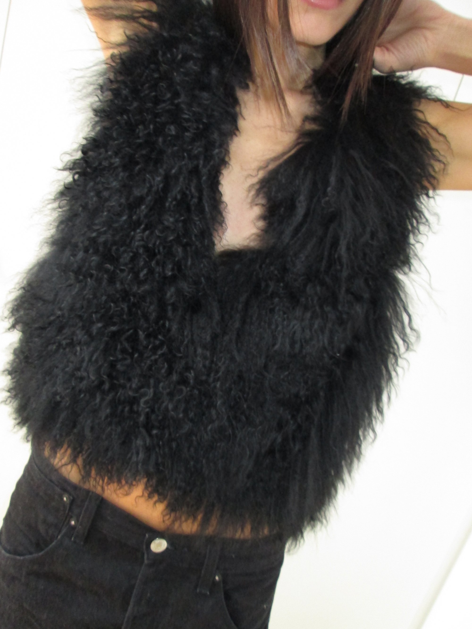 Black mongolian fur cropped vest.